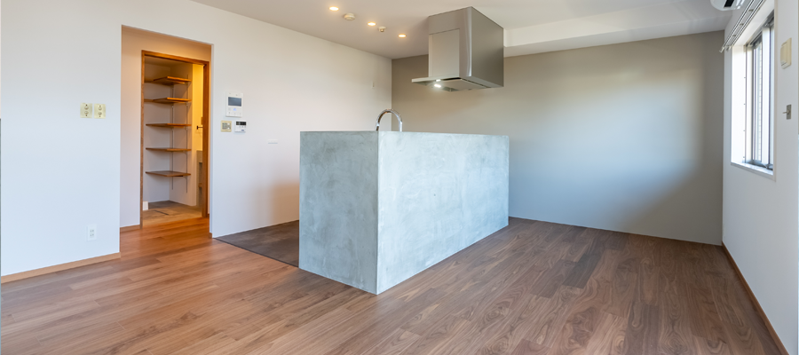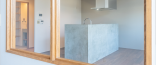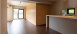 玄関,洗面,トイレ,リビングを一体感のある空間に。京都観光用セカンドハウス